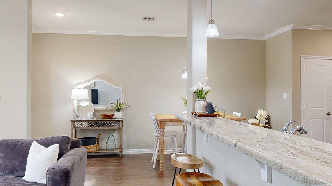 AVAILABLE FOR A JULY MOVE-IN! This spacious 4-bedroom, 4.5-bathroom townhome with a 2-car garage is situated in a highly desirable location along Harvey Mitchell Parkway. Upon entering, you'll be greeted by an open floor plan and a soft, inviting color scheme that makes the interior both appealing and functional. The kitchen is a true highlight, featuring beautiful granite countertops, an eat-up bar, soft-close cabinetry, and all stainless steel appliances. The large living room is brightened by expansive windows, creating a welcoming atmosphere. Upstairs each of the bedrooms is thoughtfully zoned with its own thermostat and includes a full, private bathroom with stunning granite finishes and generous walk-in closets. The downstairs utility room offers convenient storage space and is equipped with a front-load washer and dryer. With easy access to shopping, Texas A&M University, and a nearby bus stop, this townhome blends comfort with a prime location. Conveniently close to shopping and a nearby bus stop. A 3D immersive visual tour of this home created by Matterport is available for you to view. Ask your agent for a link. All leases participate in the Latchel Resident Benefit package. The additional fee for this package is $40 per month. ( PHOTOS ARE OF ADJACENT UNIT. Photos are of an identical floorplan. Finishes may vary.)